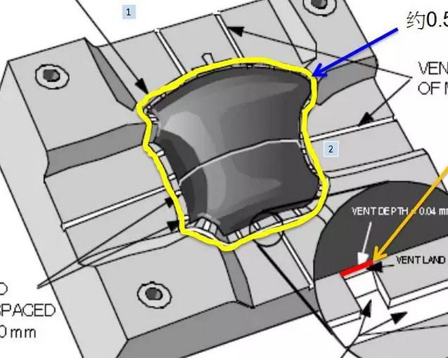 解決對策:在分模面上加開排氣,位置如下圖