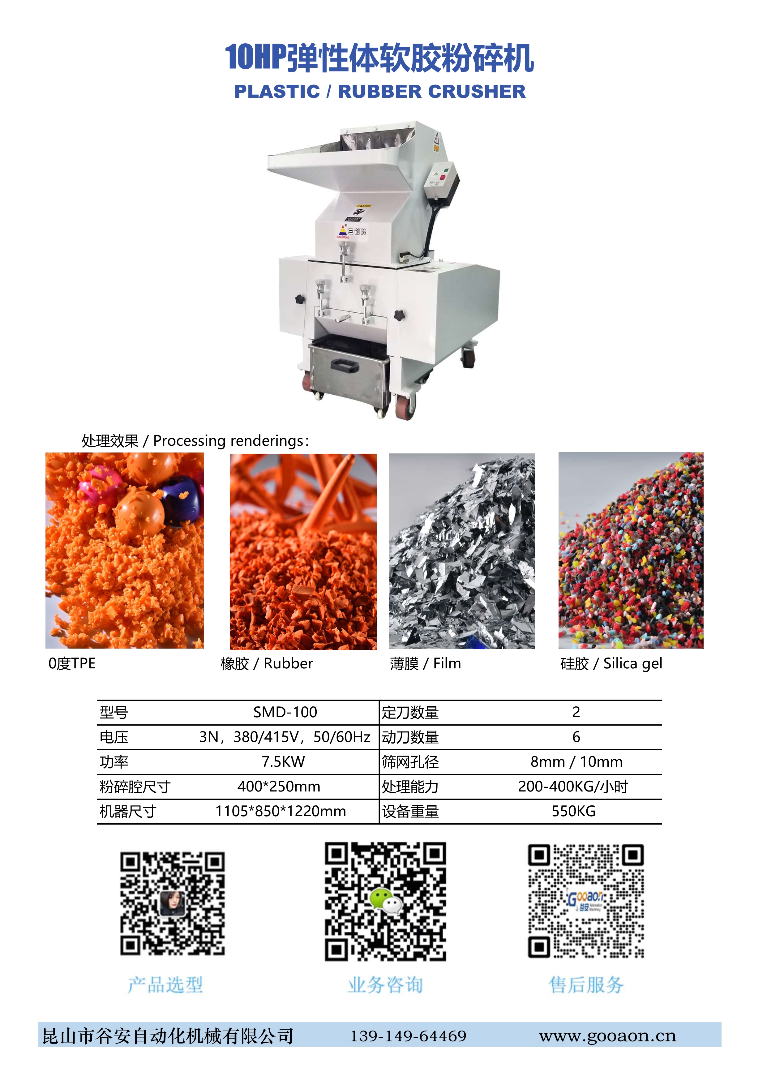 谷安彈性體粉碎機適用于熱塑性TPU,TPE,TPR,TPO,TPV彈性體橡膠的粉碎,