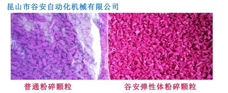 2.形狀不同,普通粉碎機顆粒成圓的團狀,谷安彈性粉碎機為粒狀