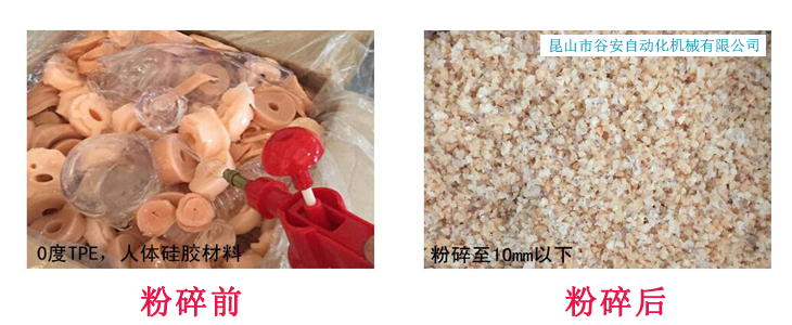 可粉碎軟膠,彈性體如:TPE,TPR,TPU,TPV,PU,SEBS,硅膠等軟性塑料,且可以24小時(shí)連續(xù)工作,不粘刀,不結(jié)團(tuán),不堵篩網(wǎng)。