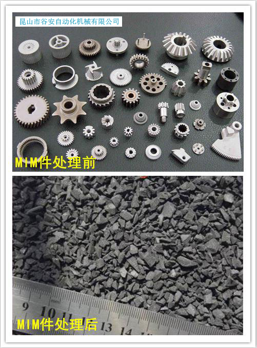 MIM粉碎機(jī):本機(jī)型專門針對金屬粉末注塑件MIM特點(diǎn)設(shè)計(jì)制造,粉碎85%以上不銹鋼粉或鐵粉注塑成型的MIM件,采用強(qiáng)耐磨型刀具,各個(gè)運(yùn)轉(zhuǎn)部件均采用防粉塵設(shè)計(jì),針對MIM件不良品,水口粉碎設(shè)計(jì),避免粉塵損壞粉碎機(jī)部件。