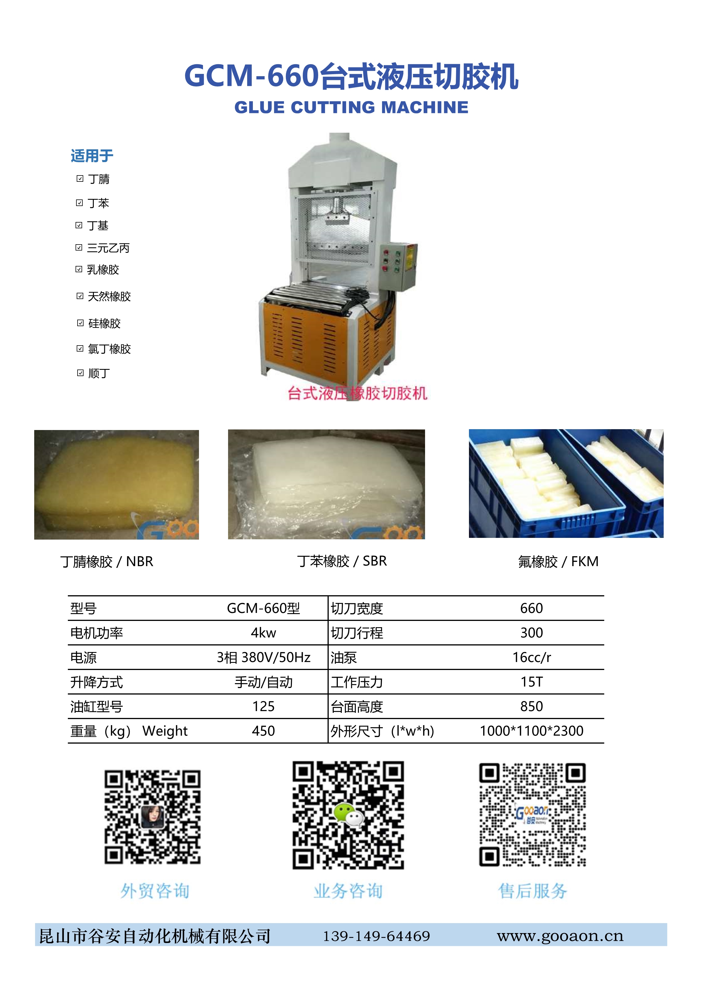 谷安機械生產的臺式液壓切膠機,丁腈橡膠切膠機是橡膠粉碎生產線非常重要的一種機械設備之一,主要用于橡膠的切條切塊加工。